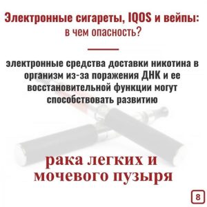 Курение электронных сигарет и вейпов ничуть не безопаснее обычных сигарет. Они вызывают рак, болезни сердца и легких, а зависимость от никотина сохраняется